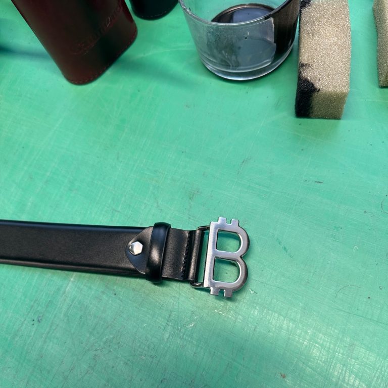 Jeder Gürtel wird mit größter Sorgfalt und Liebe zum Detail gefertigt. Mit der Blockzeit-Belt Kollektion widmen wir dem Bitcoin eine eigene Kollektion. Jede unserer Gürteln trägt eine edle, eigens in Italien gefertigte Schließe mit dem ikonischen Bitcoin-Logo. Die Gürtel selbst entstehen in sorgfältiger Handarbeit in Deutschland. Auf Wunsch prägen wir die von Ihnen gewählte Blockzeit von Hand in die Innenseite – ein individuelles Detail mit besonderer Bedeutung.